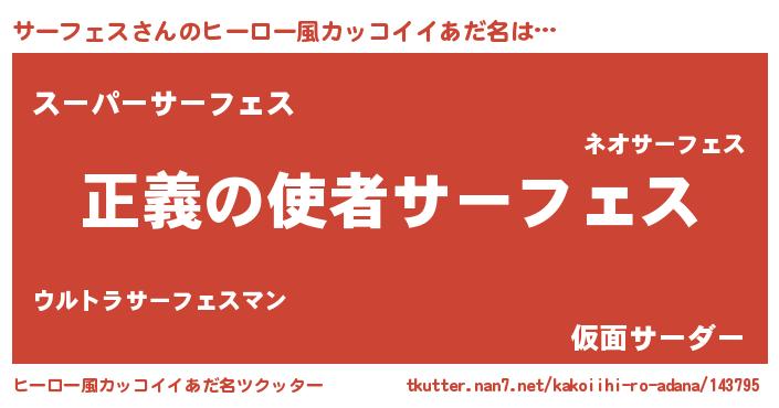 | ファンタジー風あだ名 | 『クインサット』『サーフェル』 |