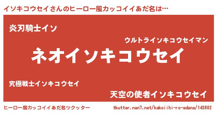| 男性向けラノベタイトル風あだ名 | 『イソキコウセイという概念が存在しない退屈な世界 』 |