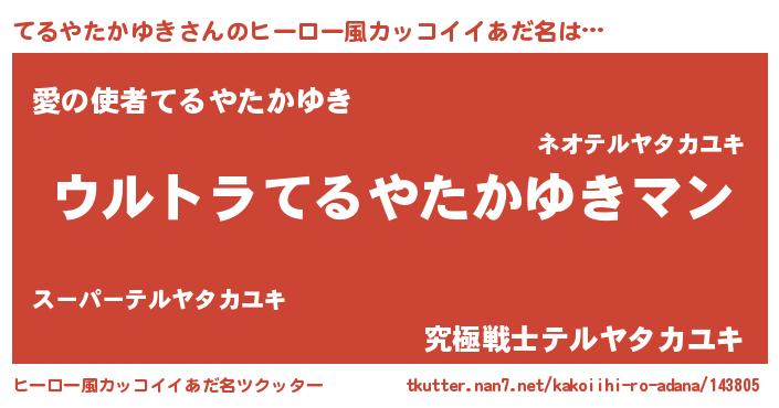 | 男性向けラノベタイトル風あだ名 | 『てるやたかゆき~年齢イコール彼女いない歴の魔法使い~』 |
