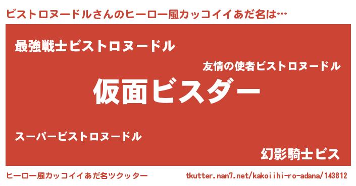 | 意味不明あだ名 | 『住所不定無職ビストロヌードル(9歳)』 |