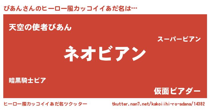 | ヘコむあだ名 | 『びあん(笑)』『びあにー』 |