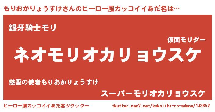 | 男性向けラノベタイトル風あだ名 | 『モリオカリョウスケスレイヤー』 |
