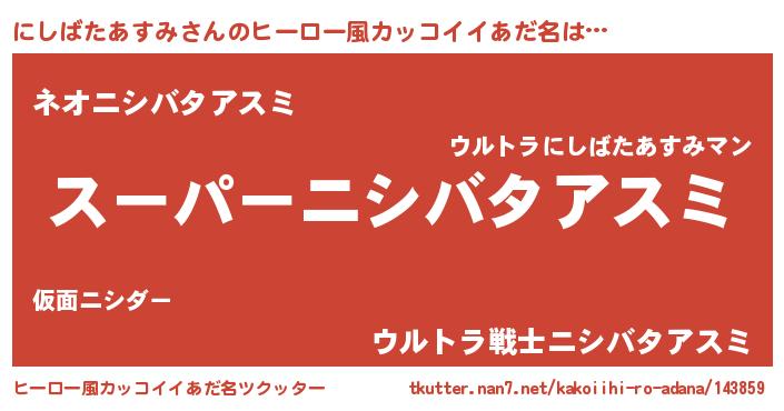 | 男性向けラノベタイトル風あだ名 | 『緋弾のニシバタアスミ』 |