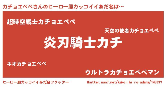 | 男性向けラノベタイトル風あだ名 | 『カチョエぺぺの嫁は女の子じゃないと思った?』 |