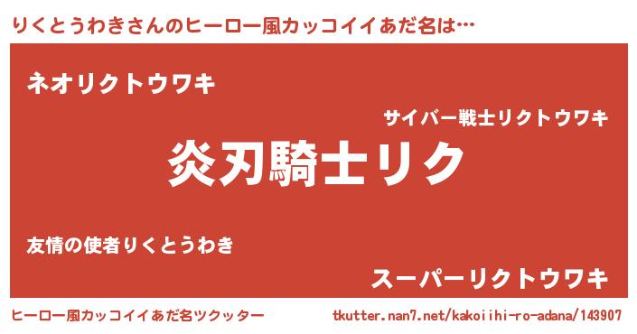 | 意味不明あだ名 | 『とにかく怪しいりくとうわき』 |