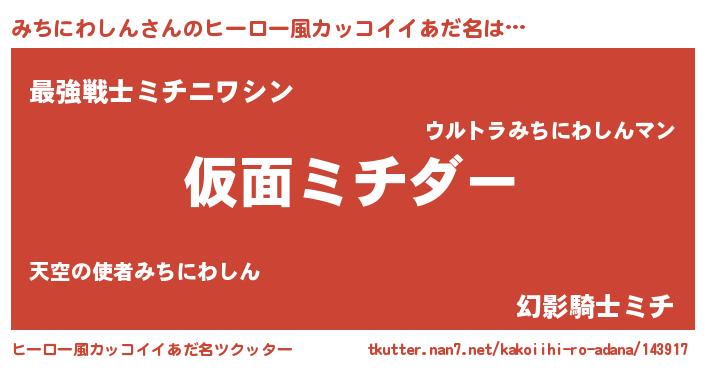 | 意味不明あだ名 | 『住所不定無職みちにわしん(4歳)』 |
