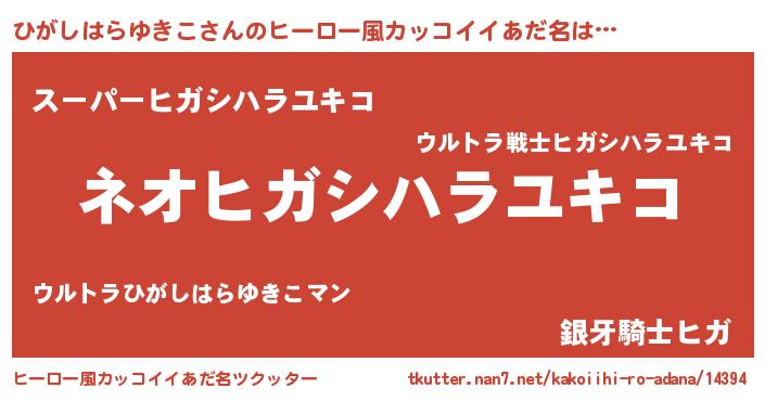 | ヘコむあだ名 | 『ひがしはらゆきこ(震え声)』『ひがにゅー』 |