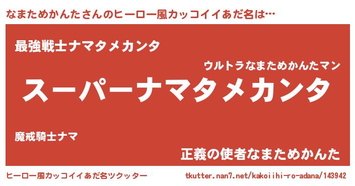| 男性向けラノベタイトル風あだ名 | 『ナマタメカンタアートオンライン』 |
