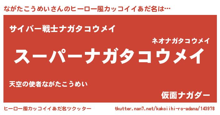 | 男性向けラノベタイトル風あだ名 | 『ながたこうめいの憂鬱』 |