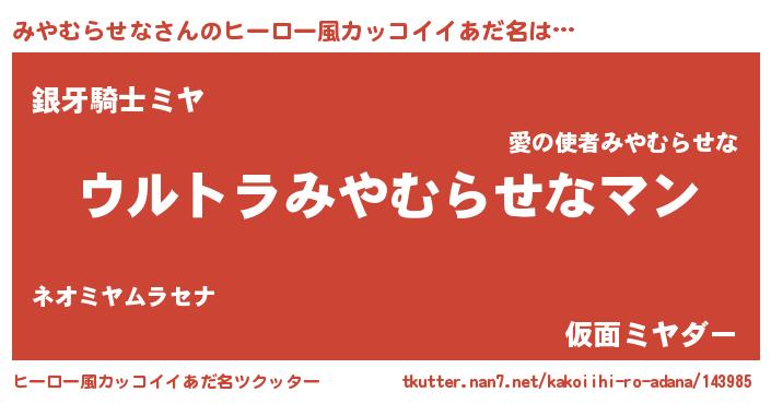 | 男性向けラノベタイトル風あだ名 | 『はたらくみやむらせなさま!』 |