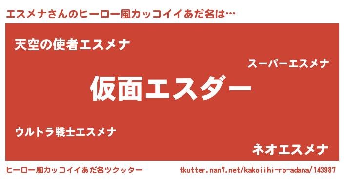 | ヘコむあだ名 | 『エスメナ(小並感)』『エスっふぃ~』 |