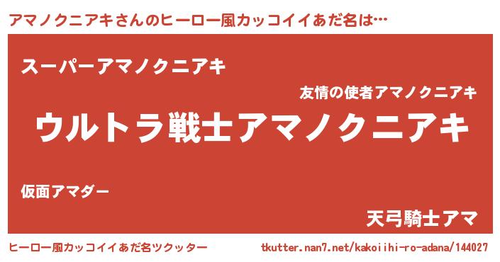 | 女子向けラノベタイトル風あだ名 | 『アマノクニアキアンティーク』 |
