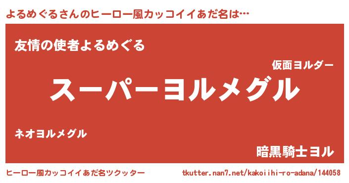 | 男性向けラノベタイトル風あだ名 | 『よるめぐるの憂鬱』『緋弾のヨルメグル』 |