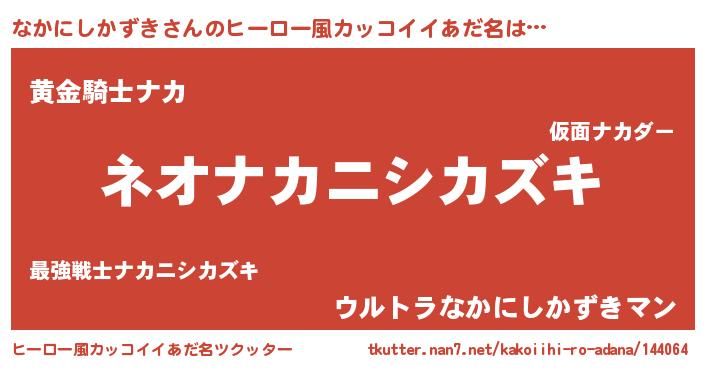| 男性向けラノベタイトル風あだ名 | 『ナカニシカズキスレイヤー』 |