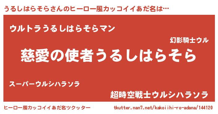 | 男性向けラノベタイトル風あだ名 | 『ノーゲーム・ノーウルシハラソラ』 |