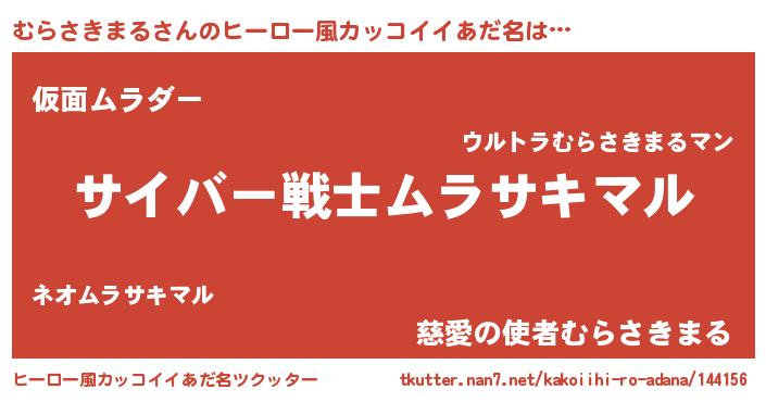 | 男性向けラノベタイトル風あだ名 | 『Re:むらさきまるから始める異世界生活』 |
