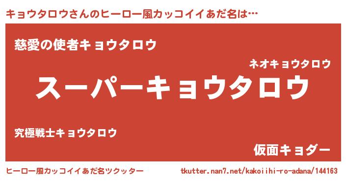 | ヘコむあだ名 | 『キョふぇ~』『キョウタロウ(笑)』 |