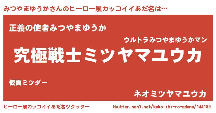 | 男性向けラノベタイトル風あだ名 | 『うちのみつやまゆうかが世界を掌握している!』 |