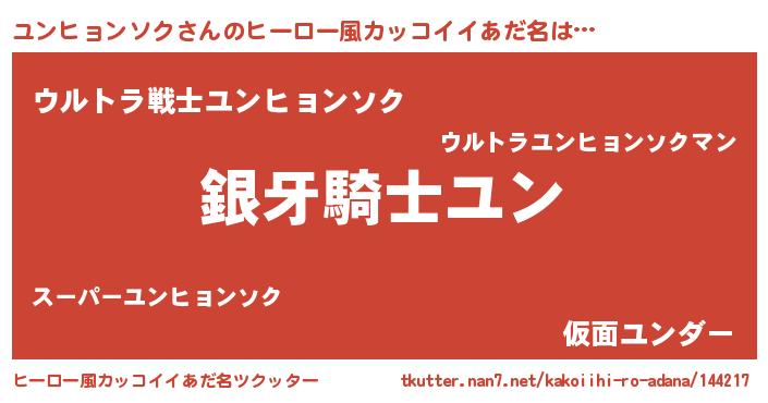 | 女子向けラノベタイトル風あだ名 | 『ユンヒョンソクの卵を拾いまして』 |