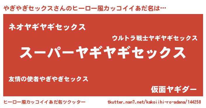 | 男性向けラノベタイトル風あだ名 | 『ヤギヤギセックススレイヤー』 |