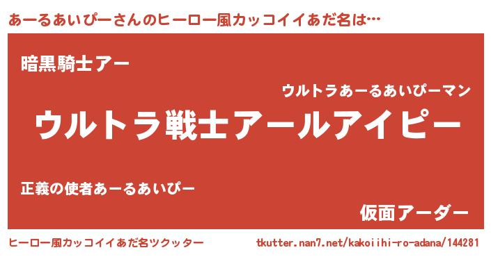 | 意味不明あだ名 | 『自称あーるあいぴー』 |