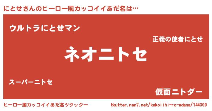 | 男性向けラノベタイトル風あだ名 | 『緋弾のニトセ』『魔弾の王とにとせ』 |