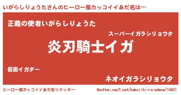 | 男性向けラノベタイトル風あだ名 | 『いがらしりょうたに滅ぼされるだけの簡単なお仕事です』 |