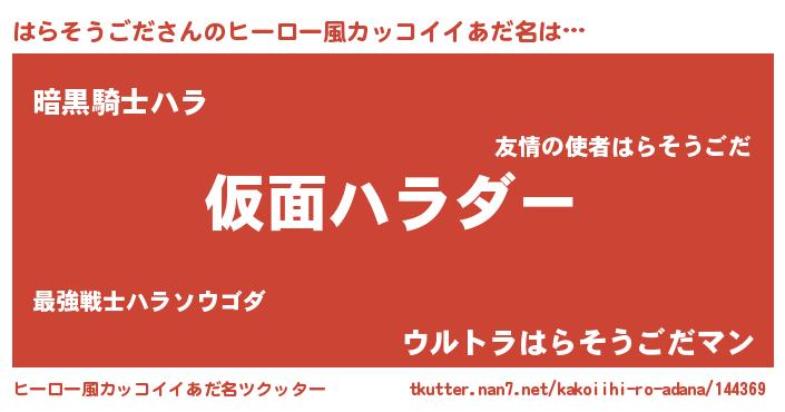 | 胡散臭い通販商品みたいなあだ名 | 『世界中を虜にした世界で10本だけ現存している希少なブランデー…その名も「はらそうごだ」』 |