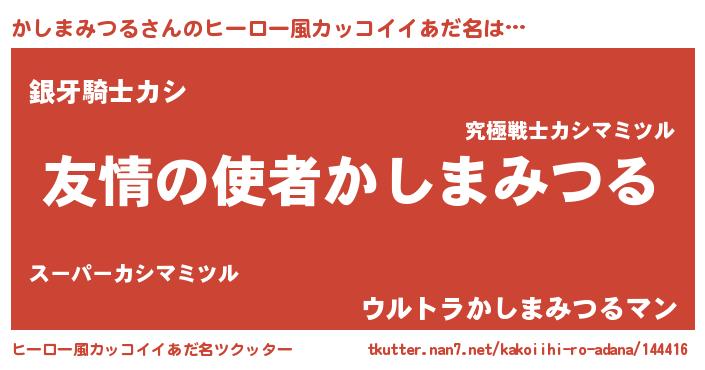 | 男性向けラノベタイトル風あだ名 | 『緋弾のカシマミツル』 |