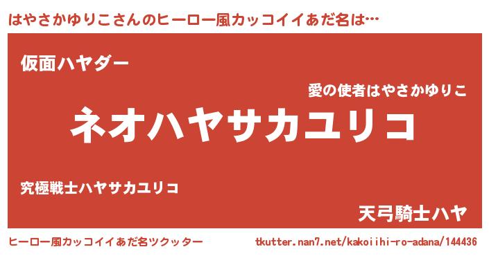 | 伝説のあだ名 | 『古文書に記された勇者はやさかゆりこ』 |