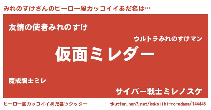 | 意味不明あだ名 | 『住所不定無職みれのすけ(8歳)』 |