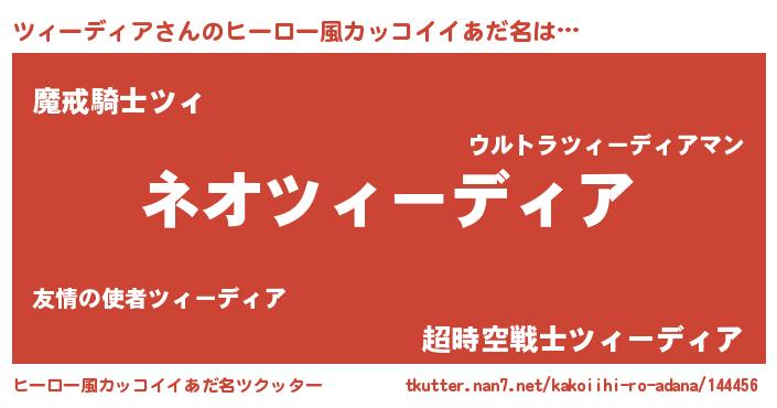 | 女子向けラノベタイトル風あだ名 | 『異世界で失敗しない100のツィーディア』 |