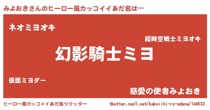 | ファンタジー風あだ名 | 『ファントムミヨス』『ミヨディッシュ』 |