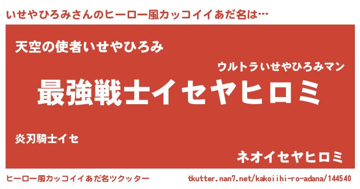 | 男性向けラノベタイトル風あだ名 | 『いせやひろみ~年齢イコール彼女いない歴の魔法使い~』 |
