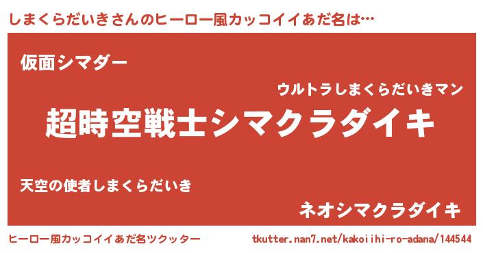 | 意味不明あだ名 | 『自称しまくらだいき』 |