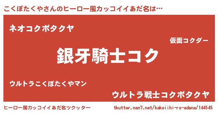 | 意味不明あだ名 | 『とにかく怪しいこくぼたくや』 |