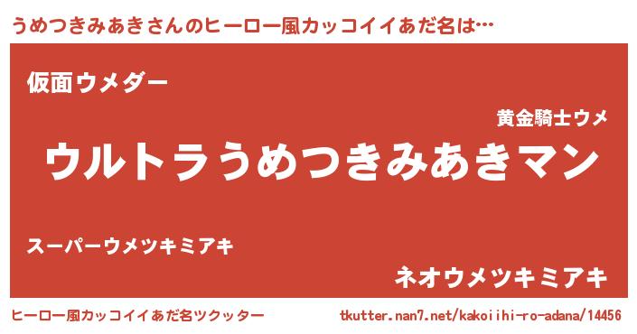 | ヘコむあだ名 | 『酢こんぶ』『うめつきみあき(笑)』 |