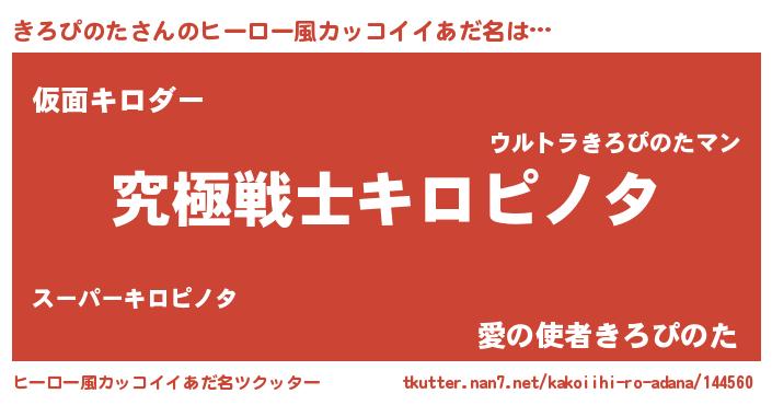 | 男性向けラノベタイトル風あだ名 | 『Re:きろぴのたから始める異世界生活』 |