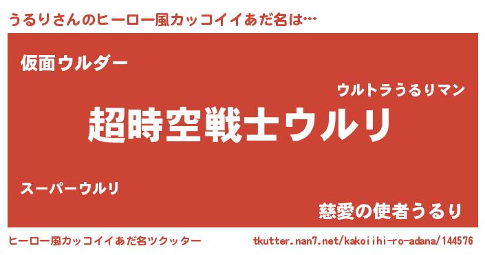 | 女子向けラノベタイトル風あだ名 | 『うるりなんてお断りですっ。』 |