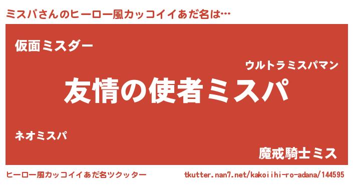 | ヘコむあだ名 | 『ミスっぺ』『豆乳』『ミスもー』 |