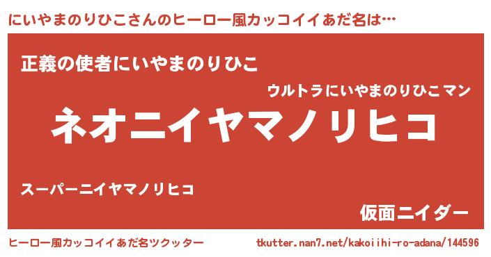 | 男性向けラノベタイトル風あだ名 | 『にいやまのりひこという概念が存在しない退屈な世界 』 |