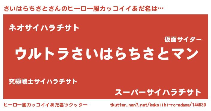 | 男性向けラノベタイトル風あだ名 | 『うちの娘の為ならば、俺はもしかしたらさいはらちさとも倒せるかもしれない。』 |