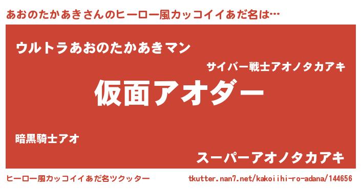 | 男性向けラノベタイトル風あだ名 | 『アオノタカアキスレイヤー』 |