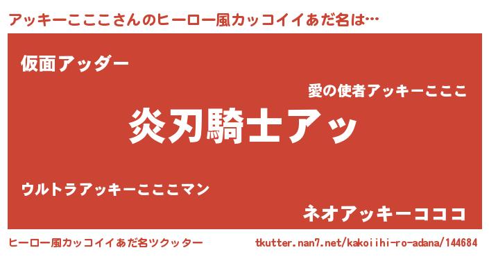 | 男性向けラノベタイトル風あだ名 | 『アッキーこここの嫁は女の子じゃないと思った?』 |