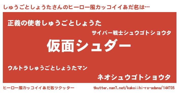 | 男性向けラノベタイトル風あだ名 | 『この素晴らしい世界にしゅうごとしょうたを!』 |