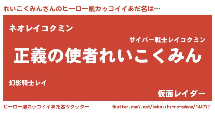 | ヘコむあだ名 | 『れいこくみん(笑)』『れいぷりん』 |