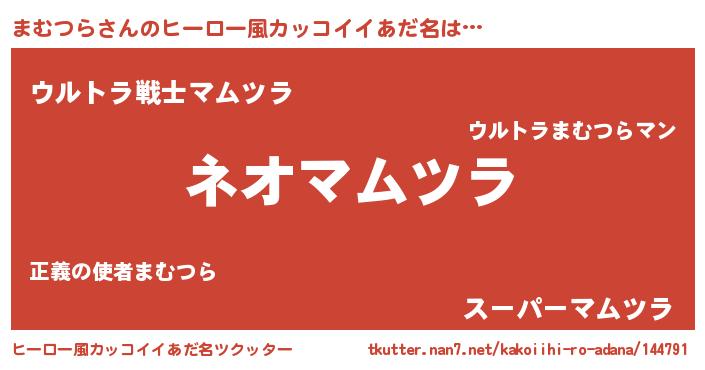 | 男性向けラノベタイトル風あだ名 | 『まむつらという概念が存在しない退屈な世界 』 |