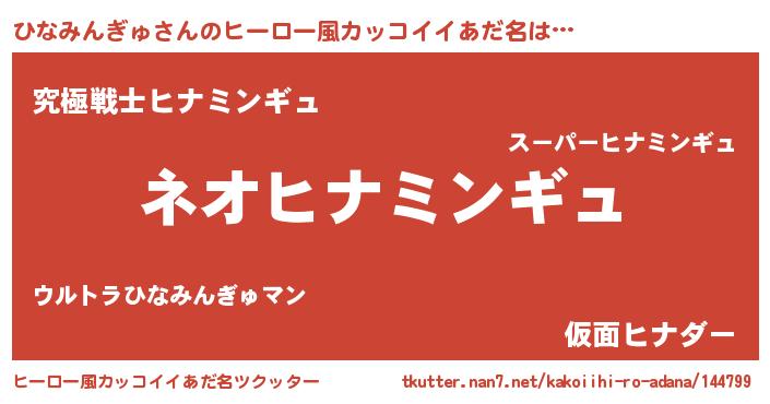 | 男性向けラノベタイトル風あだ名 | 『ヒナミンギュスレイヤー』 |