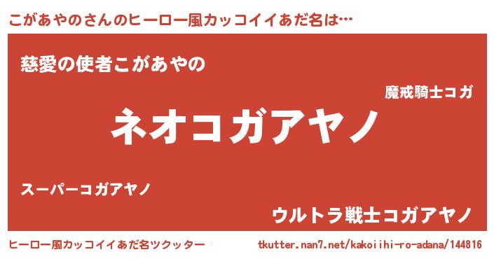 | 意味不明あだ名 | 『永久保存こがあやの』『自称こがあやの』 |