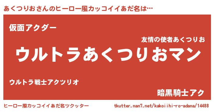 | 男性向けラノベタイトル風あだ名 | 『やはりあくつりおの青春ラブコメはまちがっている 』 |